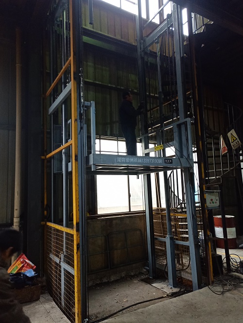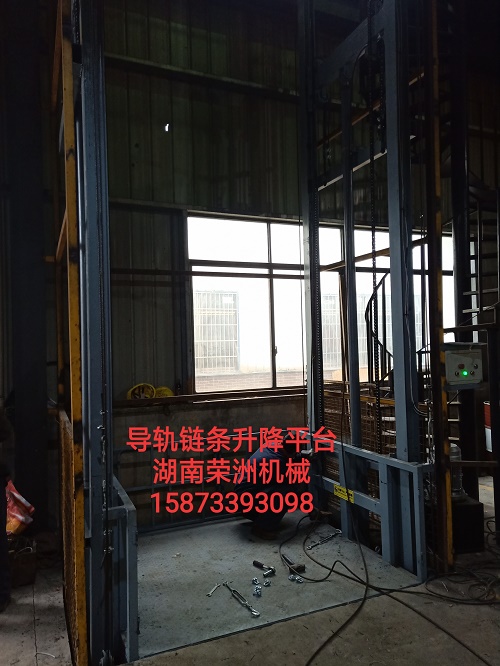 導軌鏈條式升降平臺又叫升降貨梯,主要用于車間倉庫的樓層之間的貨物升降,1-5層的多層都可適應.